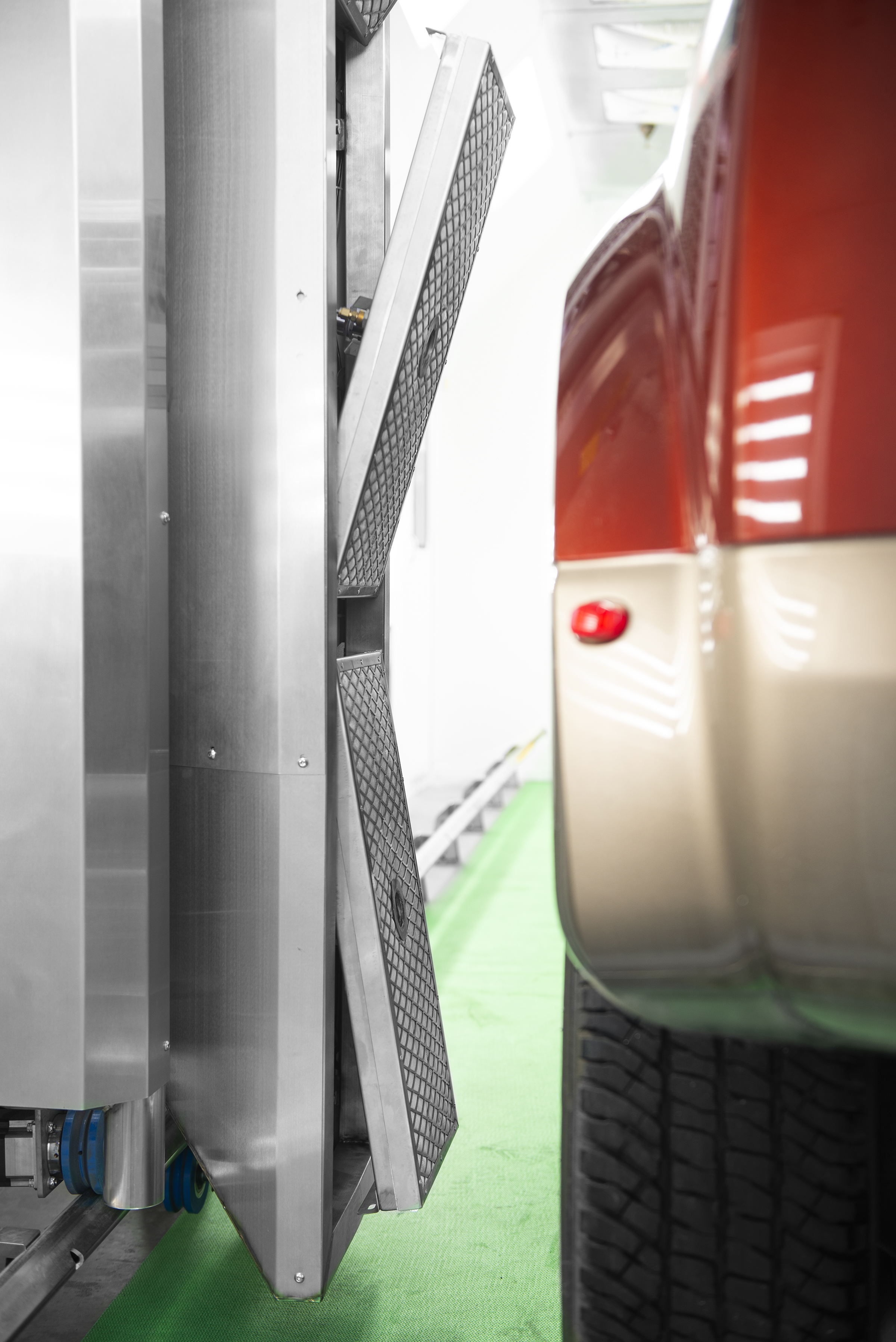 兩個垂直安裝的Thomson M100直線運動系統隨著固化系統前后移動,并上下移動裝有頂置加熱器的吊桿。兩個Thomson MG07直線模組水平安裝,以引導百葉窗運動,使紅外燈傾斜以實現最大覆蓋范圍,并避開后視鏡等突出部件。還有兩個額外的Thomson M100直線模組垂直安裝,以控制攝像機的上下運動,監測車輛尺寸并將定位數據發送到運動控制組件。